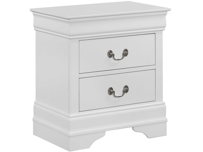 Bring home the casual and elegant Philip bedroom collection. This group is made from select hardwood and veneers available in a white finish. Elegant brass metal handles enhance the white finish while silver bail handle hardware accents the white finish. With great bedroom storage capabilities and a casual traditional style, the Philip collection suits the master bedroom that recalls luxury without straying from practicality.