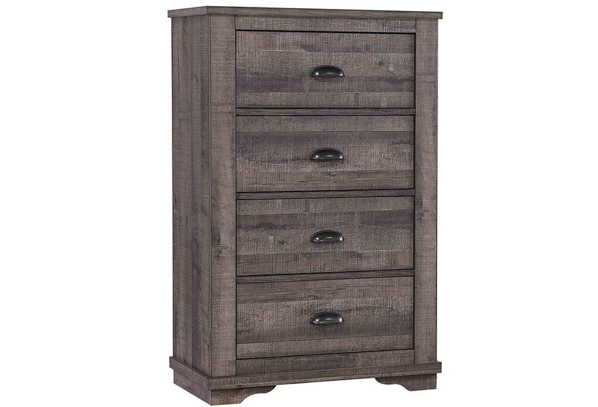 This contemporary style platform bed features solid wood construction and is finished in a rich espresso. This bed comes standard wooden slats, a thick padded leather headboard for additional comfort and design as well as a sturdy six inch ledge surrounding the border. Set includes: Headboard, Footboard, Rail, Dresser, Mirror,...