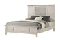 The bed, with its clean lines and louvered headboard, offers a modern twist on a classic design, creating a serene focal point in the room. It features a flared headboard and footboard top, tapered front feet, and comes in a White finish.