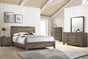 The James King bed combines simplicity and style. It features a grey finish panel headboard and footboard and tapered legs. This set is sure to make your room a cozy place to rest.