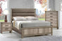 This elegantly framed king bed is a perfect centerpiece for a bedroom. The sleek low profile bed has a clean frame with a light grey finish. The headboard of the bed is upholstered with crisp vertical channels adding a geometric element to the design. Pair with the matching storage pieces from...