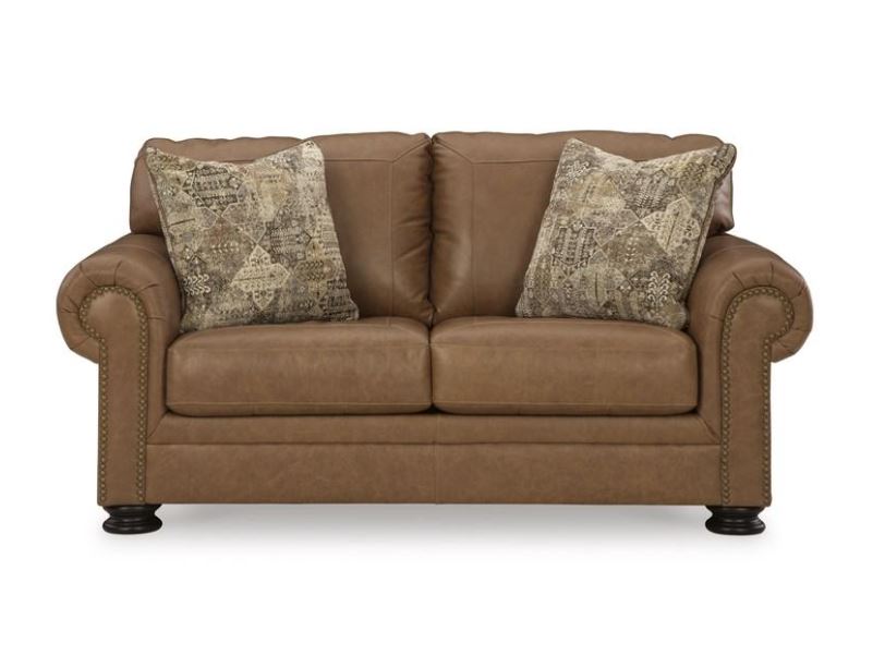Merging traditional motifs with a modern hue, this loveseat ties your transitional seating area together. Classic roll arms decorated with nailhead trim bookend the comfortable cushions for a bit of extra flair. It’s approachable, yet luxurious. With this well-dressed loveseat, everyday relaxation gets a distinctive upgrade.