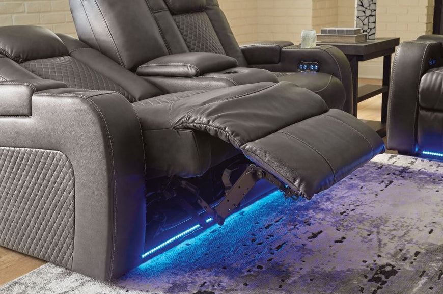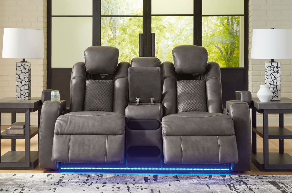 This power reclining loveseat goes beyond basic comfort. It upgrades the every day, turning your living room into an entertainment hub. Don’t want to leave your seat? Keep essentials in reach with cup holders and storage arms. You can create an even cooler vibe for family movie nights and friendly gaming matches with LED lights. Immerse yourself further with built-in wireless audio connectivity. And your sleek style isn’t compromised—its diamond stitching and streamlined arms recall the aesthetics of luxury automobiles.