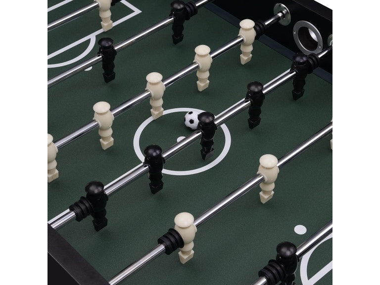 The aesthetically pleasing Clara foosball table provides an attractive, fun, and functional elements for your indoor or outdoor spaces. The stylish gaming table has a durable exterior with a beautiful contrast finish. The sturdy box legs and linear design combine stability and composition. The play-field was constructed to insure a true level surface for accurate table play. The stainless steel rods and easy spin bearings with counterbalanced players keep the ball in play for continuous fast paced action! This is the perfect addition to your game room for some friendly competition.