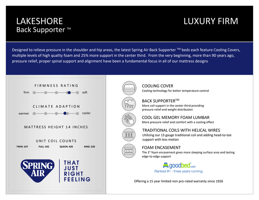 - Utilizing our 13-gauge traditional coil and adding head-to-toe support with less motion