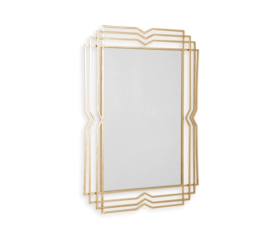 This eye-catching accent mirror elevates your home decor with its modern geometric design and glamorous gold foil finish. It's a stunning statement piece for an entryway, living room or bedroom, adding a touch of sophistication to brighten up your space.