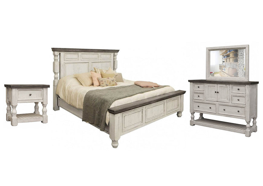 Bedroom Set includes: Headboard, Footboard, Rails, Dresser, Mirror, & Nightstand.