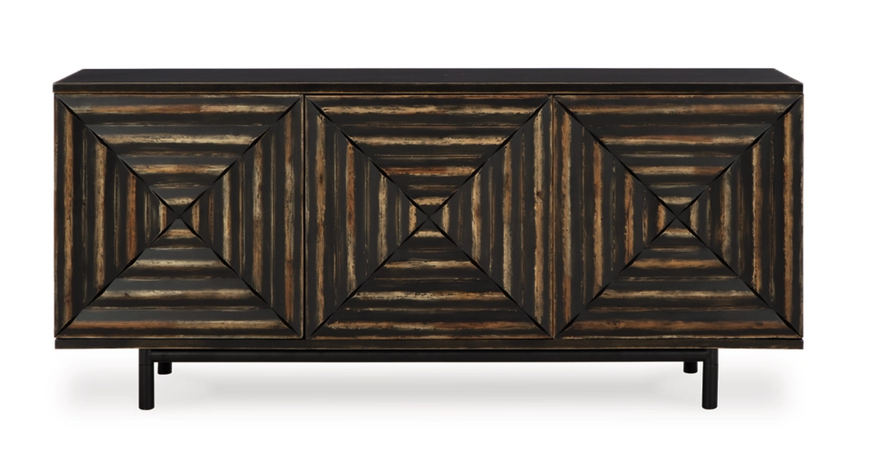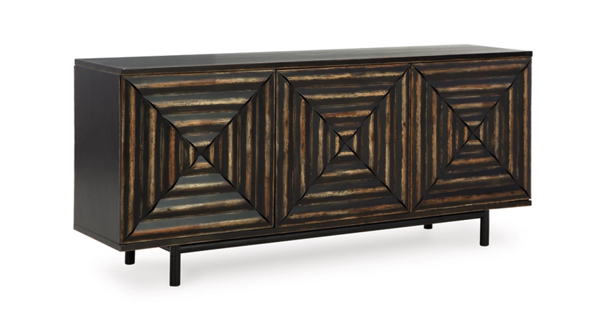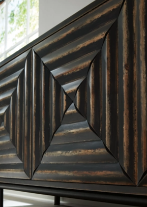 Whether you see squares, triangles or diamonds on its distinctive doors, you can’t help but be captivated by the high-end look and feel of this accent cabinet. The inlay pattern on its touch latch doors is made all the more interesting with cross-cut styling. Well-equipped with adjustable shelving, this accent cabinet serves your storage needs beautifully.