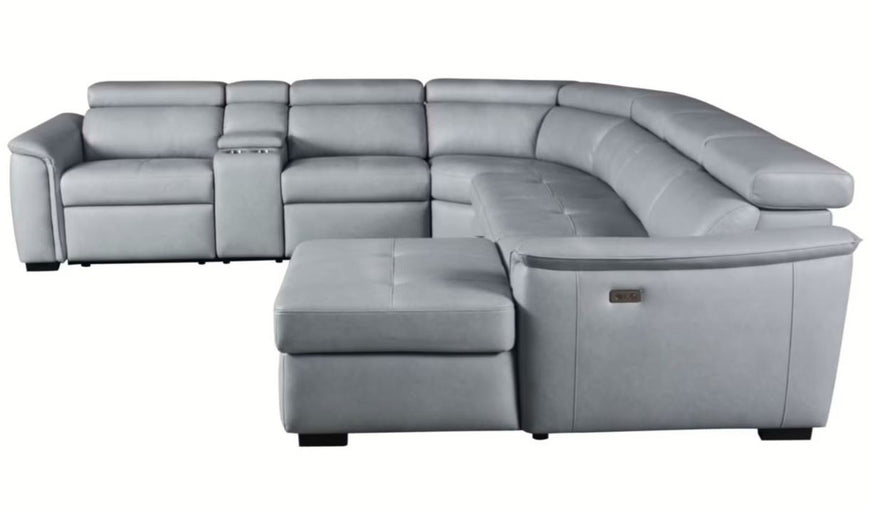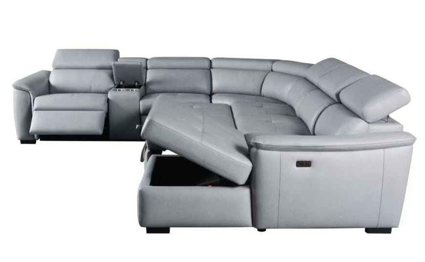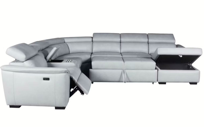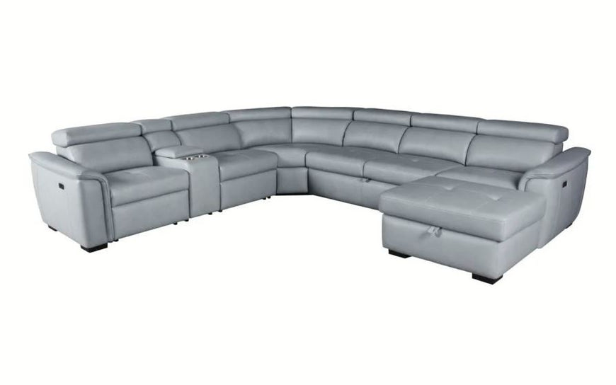 The Typhoon 4-Piece Power Reclining Sectional offers versatile comfort and modern convenience. Featuring a storage chaise and a pop-up sleeper in the sofa, this L-shaped sectional is perfect for maximizing space. A storage console with cup holders and USB charging ports ensure that all your essentials are within reach. Upholstered in a sleek Harbor Gray fabric, this contemporary sectional is designed to blend style and function seamlessly.