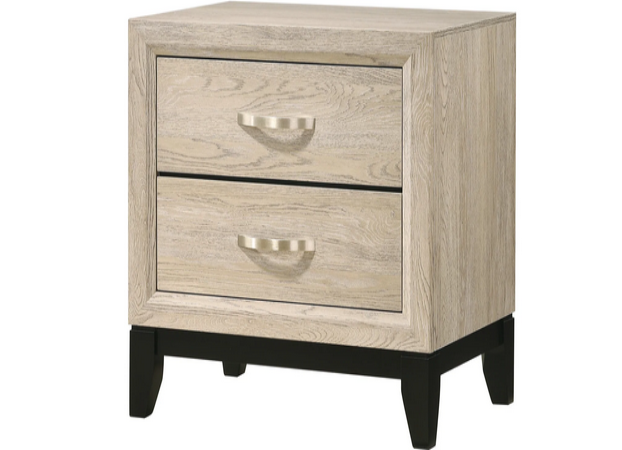 The multiple storage drawers allow you to keep your essentials organized and achieve a clutter-free space in the bedroom. With the metal bar pulls, the drawers get in and out smoothly. The chrome pulls combines well with drift wood finish of the furniture.