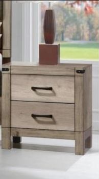 The Matteo nightstand features an elegant design with a natural grey finish. This nightstand has a clean frame, and flat drawer panels. Black metal bar hardware matches the accents on the top corners of the frame, and comes equipped with soft closing tracks.