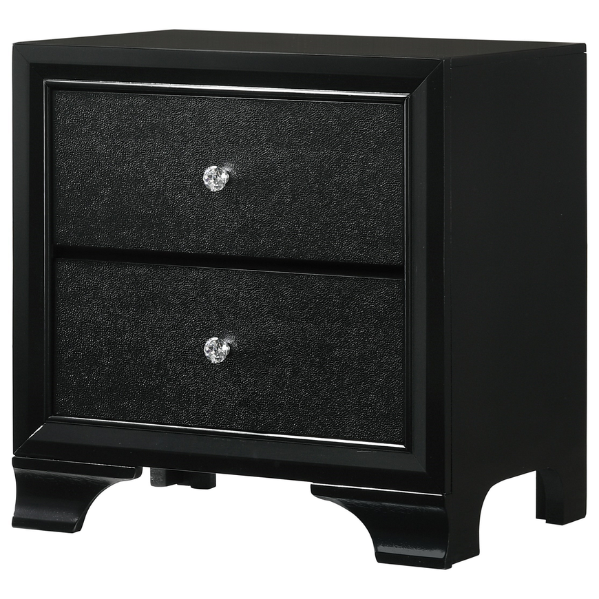 Introduce a bold touch of glam into your space with this gorgeous black finished Nightstand. With crystal-like drawer pulls, dark color and sleek lines, this Nightstand will create an impressive dark glam feel in your bedroom.