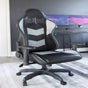 Tech this out: a swivel office chair that’s as cool as it is comfortable. The ultimate choice among gamers, the Lynxtyn swivel office chair is hard to beat. Quality crafted with a sturdy steel frame, this swivel office chair with comfy contoured seat and cutting-edge design is upholstered in a durable faux leather in gray and black. Cleverly integrated into the chair: powered LED lighting to enhance the gaming experience. Choose from six different colors or stream a mix of color using the remote control. With a swivel base, smooth-gliding casters and adjustable seat height/tilt feature, this office chair with fully reclining backrest has serious game.