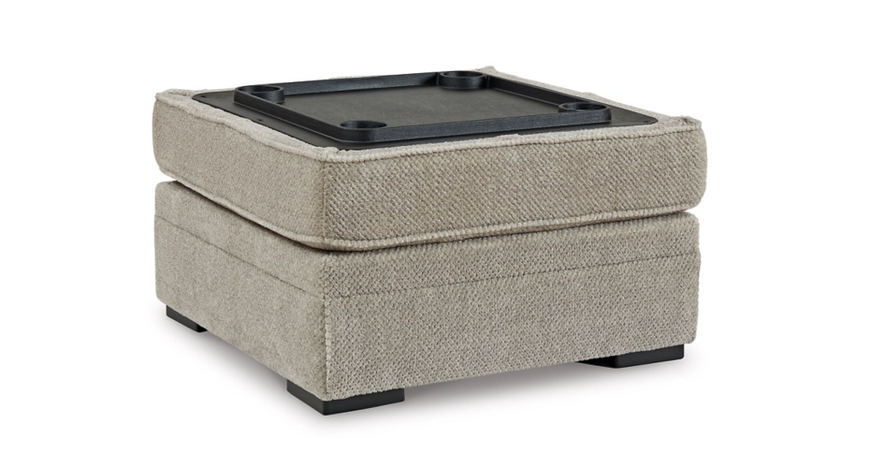 This ottoman with storage caters to your need for contemporary comfort. It’s decked out in feel-good fabric in a versatile hue. The family-friendly ottoman is ideal for hosts with the most, with easy-to-access storage space that keeps throw blankets on hand. Flip the lid to reveal cup holders and make refreshments all the more reachable. Quality time has never been so cozy.