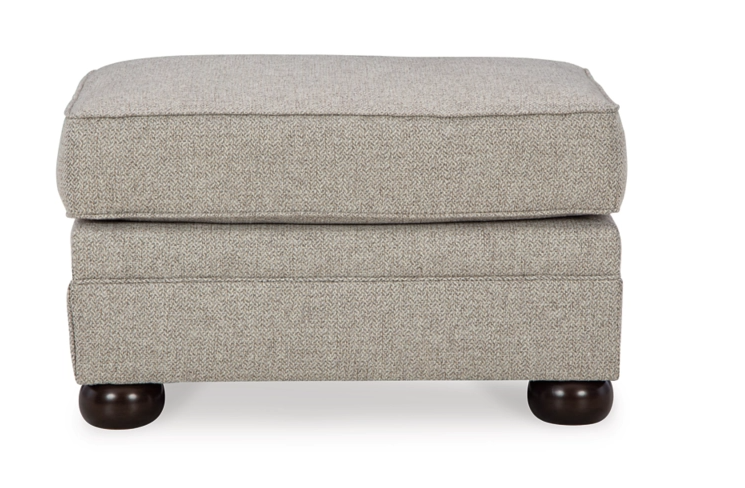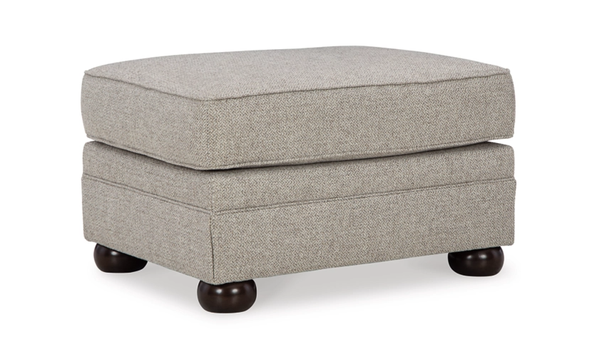 Inspired by the past but rooted firmly in the present, this ottoman complements your transitional seating area. Its versatile upholstery is delightfully detailed for a subtle herringbone effect. Designer touches like bun legs add traditional character. With this ottoman's reliable style and comfort, all you need to do is kick back and relax.