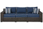 Style. Comfort. Quality. Value. The Grasson Lane sofa with cushion really goes to town, giving you the total package for outstanding outdoor living. Crafted to withstand the elements, this outdoor sofa’s resin wicker base and rust-proof aluminum frame ensure carefree living, while the plush cushion covered in fade-resistant Nuvella® fabric provides stylish appeal. Comfy and casual, it's perfect for use inside or out.