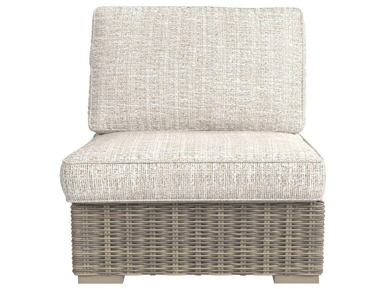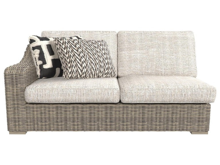 Inspired by driftwood tones, the Swivel Lounge Chair and Seashore Sectional blend coastal charm with durable, all-weather materials—perfect for patios, sunrooms, and indoor lounging alike. Seashore Sectional (4-Piece Set) Includes armless chair, curved corner chair, left- & right-arm loveseats Plush cushions in Nuvella® fabric All-weather foam core for lasting comfort Handwoven...