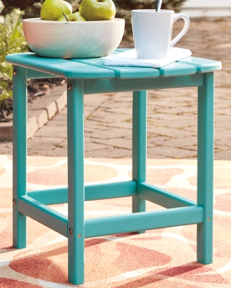 Add cottage-quaint charm to your outdoor oasis with this outdoor end table in red. Made of MEGA TUFF™ high-density polyethylene material, it's sure to weather the seasons beautifully. Designed to shed rainwater, the table's slatted top with gently rounded corners provides exceptional form and function 14.63" W x 18.75" D...
