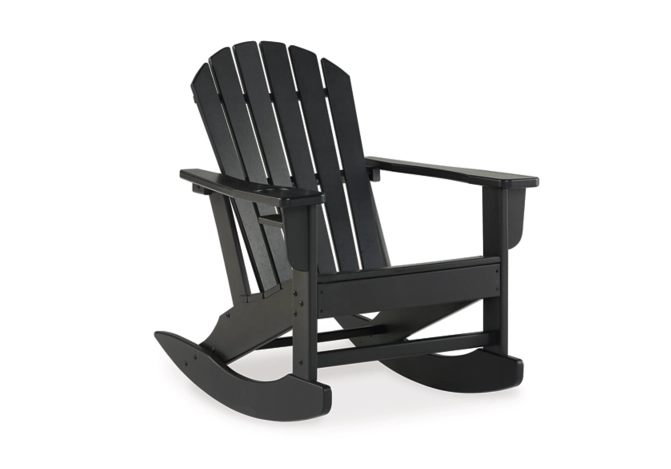Add cottage-quaint charm to your outdoor oasis with this rocking chair in white. Made of MEGA-TUFF® high-density polyethylene material, it’s sure to weather the seasons beautifully. Designed to shed rainwater, the chair’s slatted styling and classic Adirondack design provide exceptional form and function.