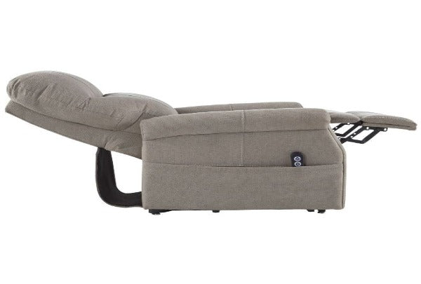When it comes to exceptional comfort and style, this power lift recliner is right on the mark. This single-motor lift recliner with 40" high back design has you covered from head to toe. Richly neutral, feel-good fabric is sure to blend beautifully in your space. Clean, transitional styling looks equally...