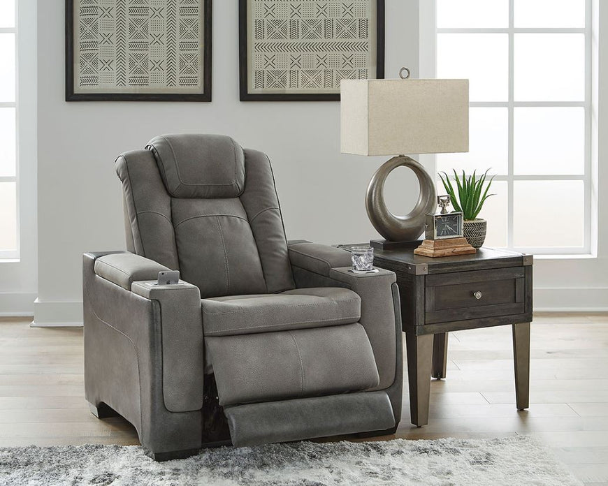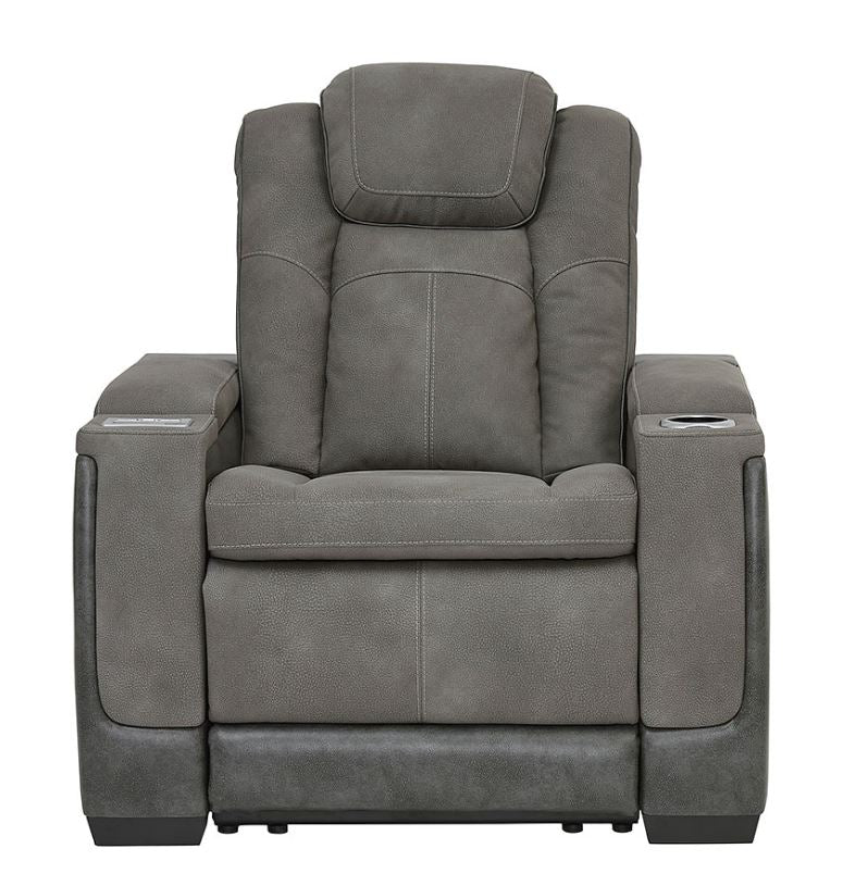 This sleek, ultra-modern power recliner has it all. With designer looks and head-to-toe comfort, it has the upscale look of leather at a scaled-down faux leather price. Its gray two-tone upholstery is more durable and water-repellent than regular leather, an added bonus for families with children or pets. Features including wireless and USB charging, an adjustable headrest and an extended "zero-gravity" ottoman for improved circulation make this the next generation of power recliners.