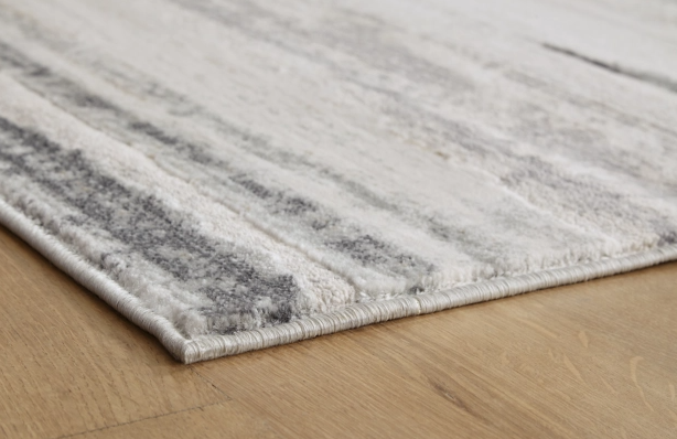 Set off your decor in sophisticated style with this area rug. With a high-low abstract design in cream, gold, sage and shades of gray, it complements a variety of interior design themes. Made of heat set polypropylene/polyester shrink yarn Machine woven 9mm pile Backed with jute Spot clean only Rug...