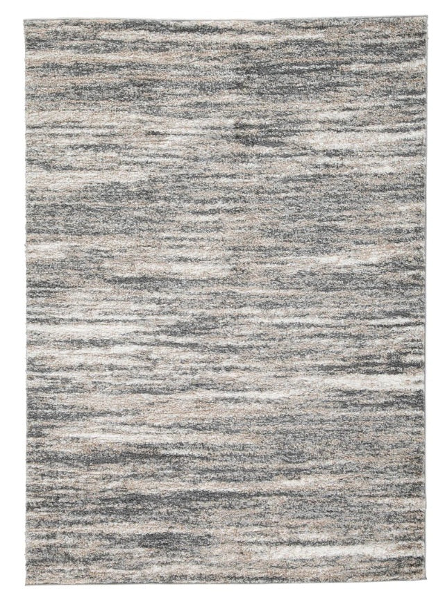 Indulge in retro revival with this sumptuous shag rug. Its plush pile is loaded with feel-good texture. With a striped design in ivory, beige and shades of gray, the rug's harmonious hues make it a tasteful choice for so many spaces. Made of polyester Machine woven 30mm pile Jute backing...