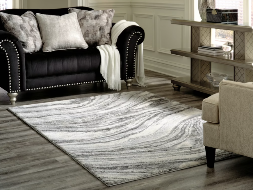 Inspired by gorgeous quartz bands of agate, this area rug displays flowing ribbons of color. Its machine-woven high-low agate design, in ivory and shades of gray, features deep, rich hues while maintaining exceptional durability. Comfortable and sophisticated, this accent rug is the ultimate accessory for your contemporary living space.