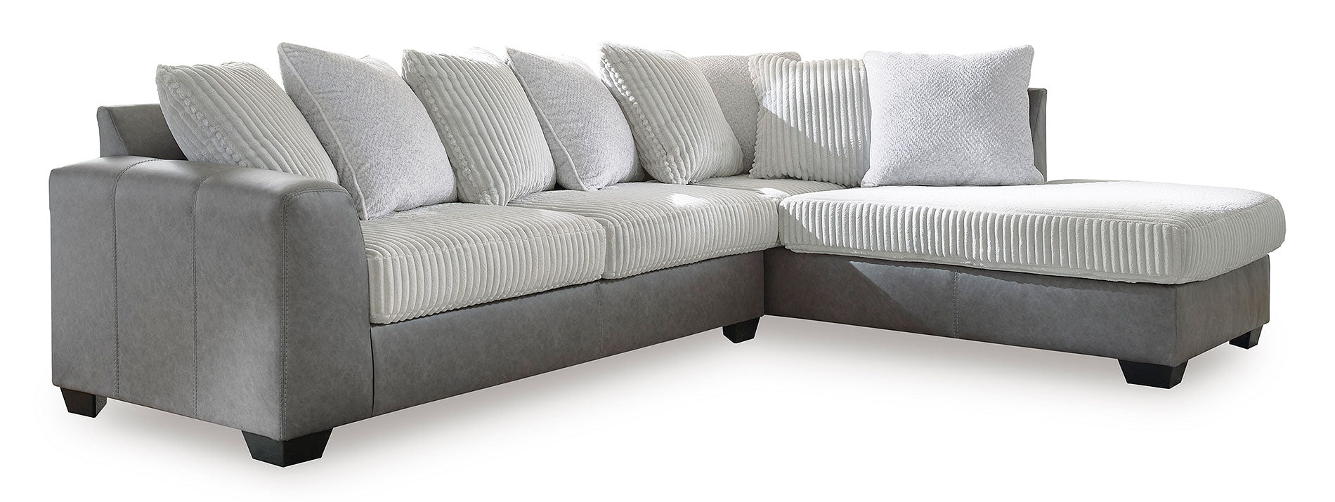You want your living room to reflect your ultra-cool character. Introducing: this Grace Sectional. Its combination of retro-cool jumbo cord and sleek faux leather takes a unique approach to contemporary aesthetics. For a finishing touch, pillows provide a stylish scatter back silhouette.