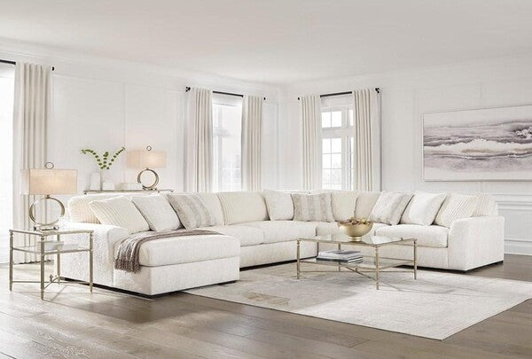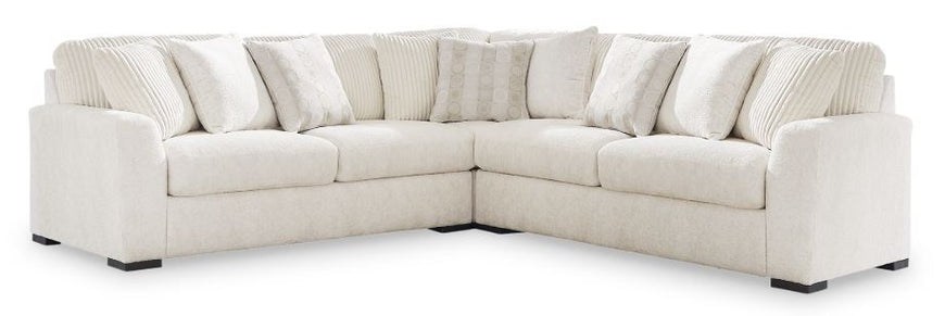 Reflect your uniquely versatile style personality with this sectional with a chaise. Its plush upholstery is complemented with retro-cool corduroy on the back cushions, creating an ultra-soft seating experience with tons of eye-catching texture. Ready to refresh your aesthetic? The sectional’s transitional silhouette and neutral hue easily adapt to your style as it changes.