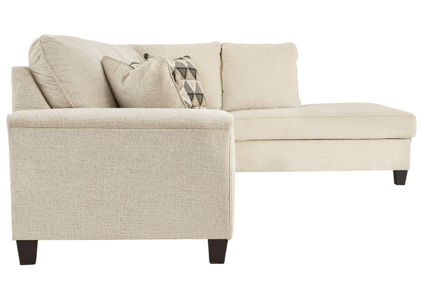 If you’re looking to lighten the mood, you’re sure to find the budget-conscious Abinger sectional sleeper beautifully fits the bill. Covered in a creme chenille upholstery loaded with plush texture, this less-is-more contemporary sectional is dressed to impress with angled side profiling and a track arm wrapped with a layer of pillowy softness for that little something extra. Open-ended chaise adds to this sectional’s swank look. Full-size memory foam mattress comfortably accommodates overnight guests.