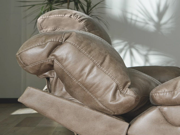 There is power in beauty with the Claudine Power Reclining Sofa. Handsome crackle effect in the upholstery gives the appearance of supple leather, but this power reclining sofa is all about the warmth of fabric. Contrast jumbo stitching adds a stylish touch, while double stuffed armrests cuff your body in comfort. Adjust your head and recline back with one easy touch.
