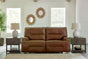 Master statement-making contemporary comfort with this power reclining sofa. It displays a striking yet streamlined profile, with auburn-hued leather match upholstery balancing natural beauty and refined design. Adjustable headrests and USB charging polish off this richly crafted piece.