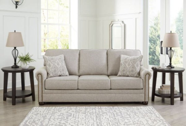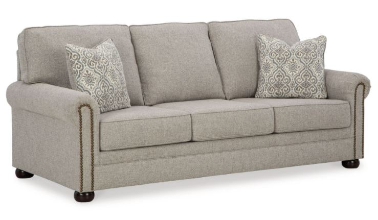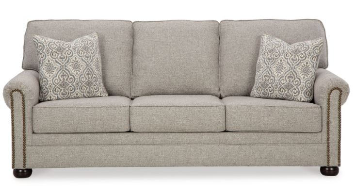 Inspired by the past but rooted firmly in the present, this sofa complements your transitional seating area. Its versatile upholstery is delightfully detailed for a subtle herringbone effect. Designer touches like decorative nailhead trim and bun legs add traditional character. With this sofa's reliable style and comfort, all you need to do is sit back and relax.