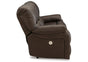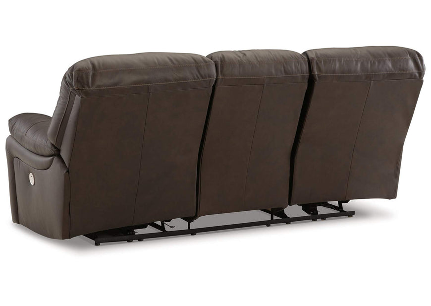 This practical power reclining sofa emphasizes functionality, combining contemporary character with irresistible comfort. Its affordable, leather upholstery ensures a stylish look without breaking the bank. With the convenience of reclining at the touch of a button, this piece is perfect for relaxed, luxurious seating areas designed for quality time.