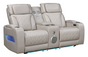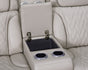* Sofa Drop-down table with LED reading lights, dual cup holders, 2 electrical outlets and USB and wireless charging