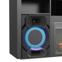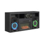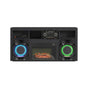 Illmatic Fireplace from Elements. Features include: 23" fireplace insert for added warmth. Console with karaoke, includes one microphone, not sold separately. High quality sound system for audio experiences. Rating at 1400 watts, 120VAC and 60HZ. Color changing LED lights on speakers for ambiance. Additoinal cubby storage. Sleek black finish.