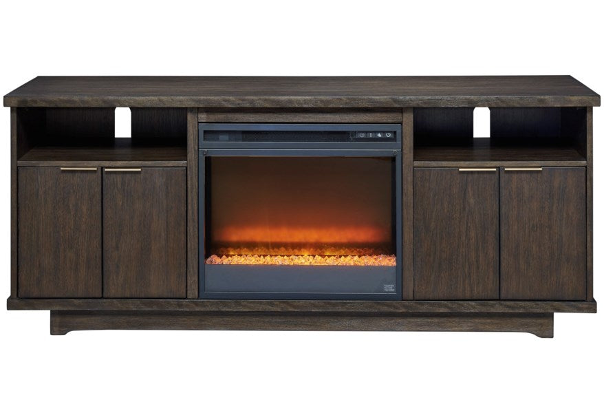 Brazburn TV stand with fireplace option is hearty, rustic style simply done right. It’s expertly crafted with a mango veneer with a dark brown espresso finish. Details include a thick tabletop, open shelves and double door side cabinets to house all of your electronic needs. Enhance the Brazburn’s sense of...