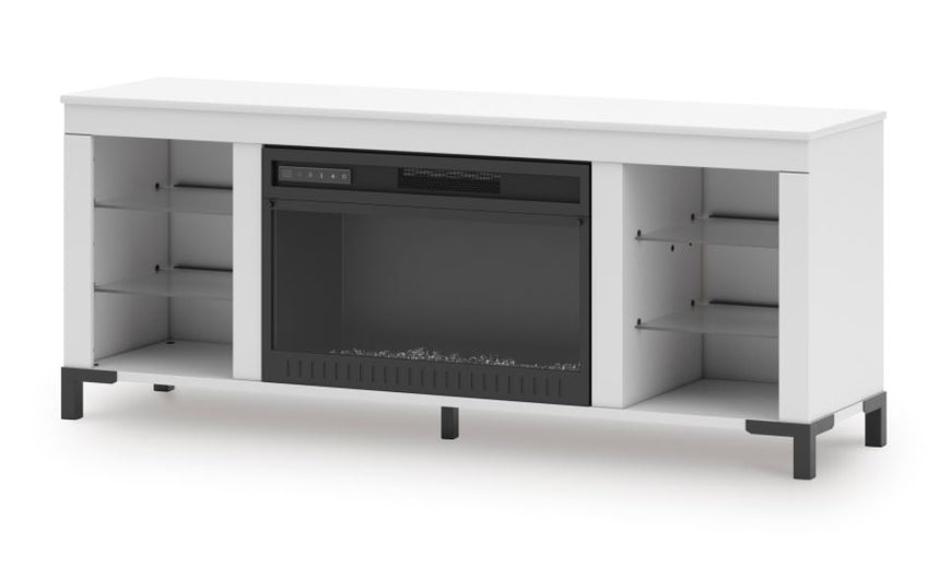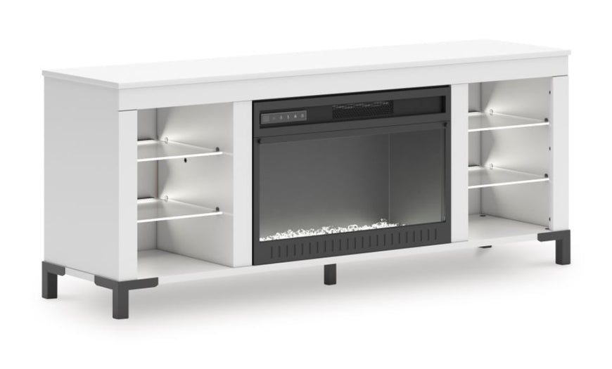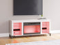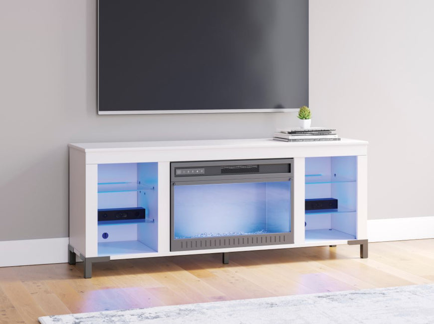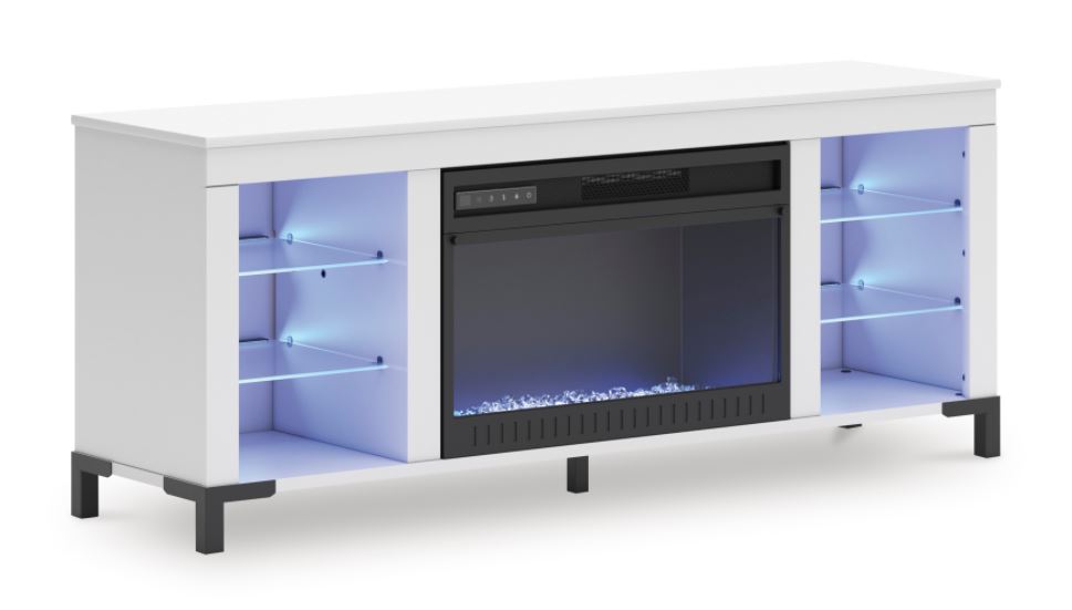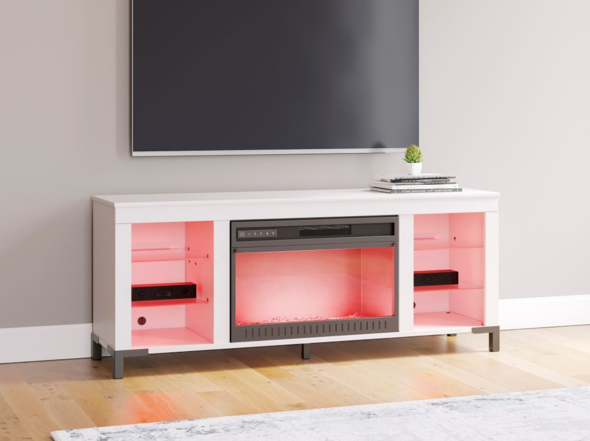Level up your gaming experience and make movie nights to remember. This TV stand with electric fireplace extends your entertainment beyond the screen. Its built-in fireplace brings the heat, synchronizing with LED backlighting on the shelves. And you can customize the vibe with three trendy color options: blue, white and red. Modern function. Captivating, cool style. With this TV stand, revamp your home’s recreational hub like never before.