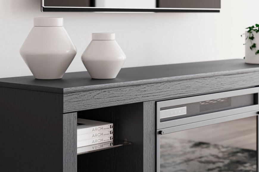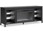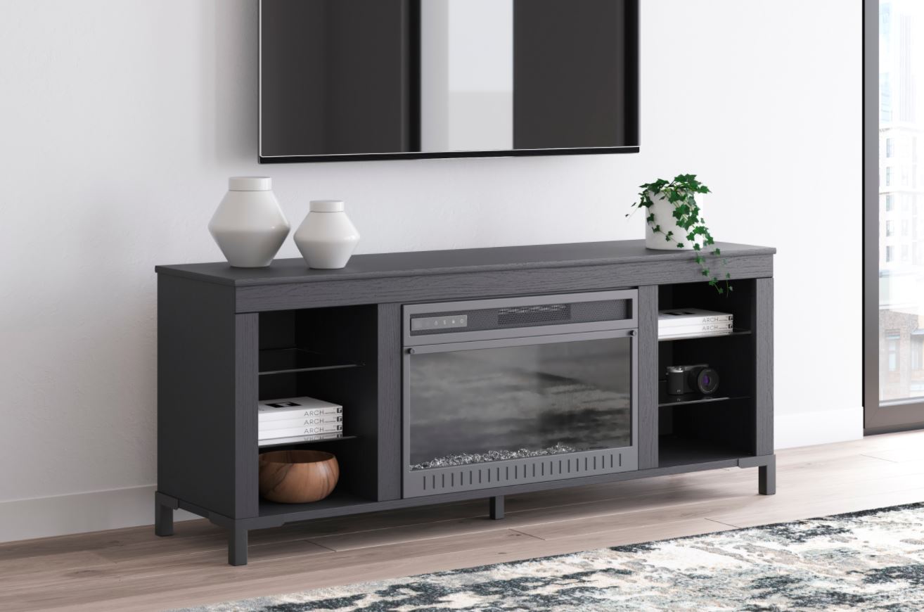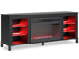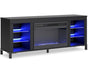 Level up your gaming experience and make movie nights to remember. This TV stand with electric fireplace extends your entertainment beyond the screen. Its built-in fireplace brings the heat, synchronizing with LED backlighting on the shelves. And you can customize the vibe with three trendy color options: blue, white and red. Modern function. Captivating, cool style. With this TV stand, revamp your home’s recreational hub like never before.