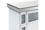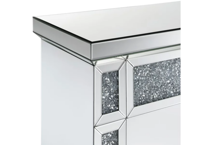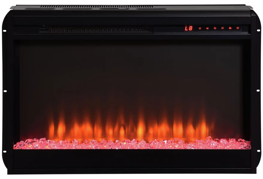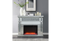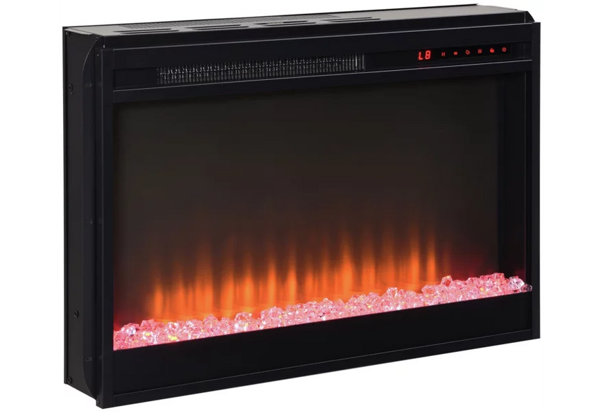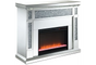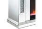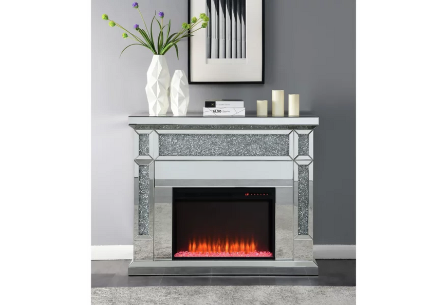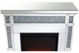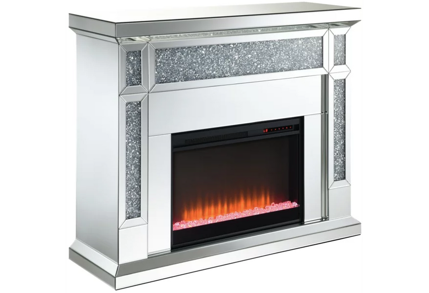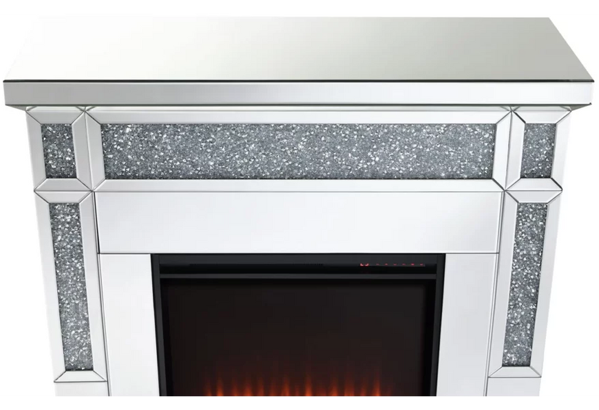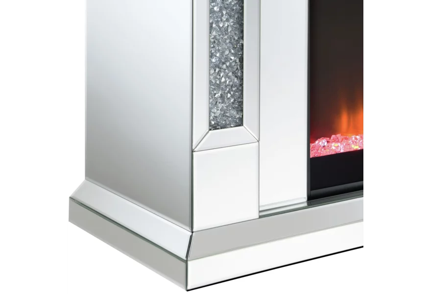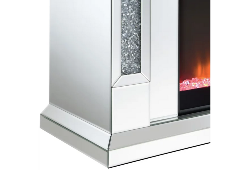 This Tv Stand with fireplace will glow up your space. Finished in a glaring silver with crystal inlays surrounding it, this fireplace is ideal for modern home aesthetics. Built with sturdy engineered woods, metal, and glass. The Edwin is a secure and freestanding fireplace. Includes a remote control so that you can control the temperature right at your fingertips. It is the perfect realistic fireplace that will bring you and your guests cozy warmth without the smoke. Give your home a relaxing and romantic ambiance by adding this fireplace.