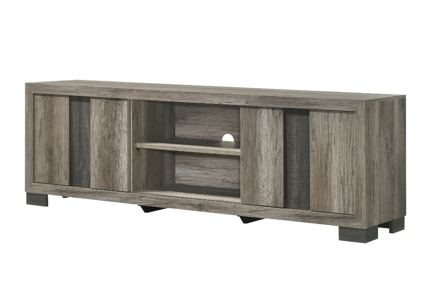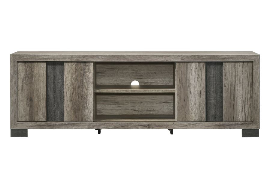 This sleek and modern entertainment unit is the epitome of contemporary elegance and functional design. Boasting a bold finish with striking marble-like accents, this piece serves as a captivating centerpiece for any living space. Its generous surface perfectly accommodates large screen displays, while the ample storage space including open shelving and discreet cabinets provides a neat solution for all your multimedia devices.