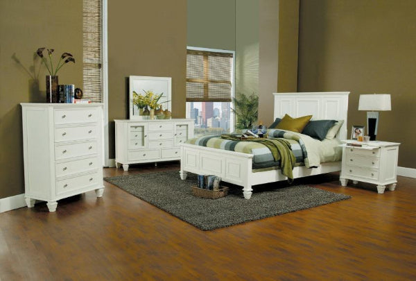 The Sandy Beach collection will infuse your master bedroom decor with clean lines and a classic style. The collection includes a variety of bedroom pieces, with different bed options and plentiful storage to meet your needs. Fully extending drawers are convenient, with durable dovetail construction to last a lifetime. With simple styles and classic molding, you can create a timeless look in your bedroom. Available in both Cappuccino, White and Black finishes on pieces constructed of tropical hardwoods, these calming bedroom pieces are sure to complement your style and complete your inviting bedroom ensemble.