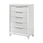 The Cressida Chest will surely make a statement in your bedroom. It features five drawers with finger pulls, tapered feet, and comes in a white finish.