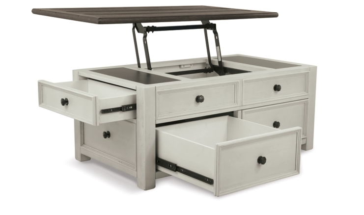 Store, serve and showcase your favorite things with the Bolanburg lift top cocktail table. Its textured antique white finish creates a vintage two-tone look that will endure for years.