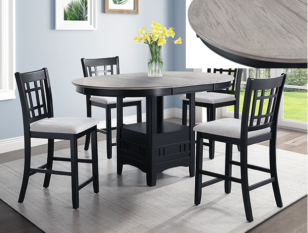 Table: 42" x 42" ~ 60" (18" Leaf)  x 36"H