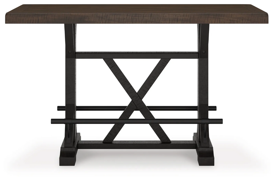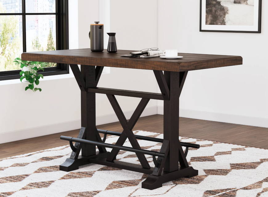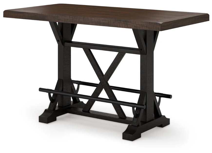 A high-style choice for smaller spaces, this counter height dining table serves up the best in rustic farmhouse living. The table's two-tone finish pairs a brown wood-tone top with a rustic black base for a double helping of charm. Black metal footrests add such a distinctive twist.