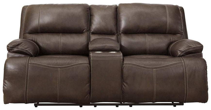 Life is so much better when you can enjoy the pleasure of real leather—at a price to put you at ease. That’s exactly what you get with this power reclining sofa. Thanks to real leather throughout the seating area, you've got a reclining sectional that feels like a million bucks but won’t break the bank. Tailored to those with an eye for contemporary design, this power reclining sectional is dressed to impress with an upscale matte finish, clean-lined divided back tufting, distinctive jumbo stitching and chic pillow top armrests. Perhaps best of all power adjustable headrests let you recline back and still have a primo view of the TV.
