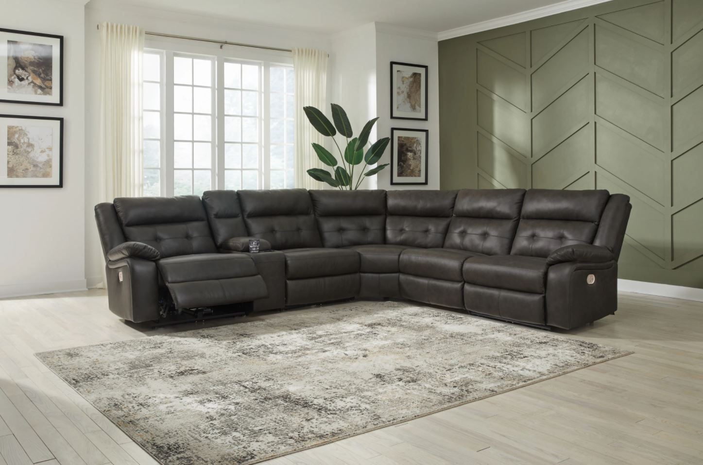 Modern luxury made for your modern lifestyle. This power reclining sectional aids you in crafting a sleekly designed, supremely functional living room. Indulge in high-end relaxation with its genuine leather seating area, easy reclining and adjustable headrests. Hosting guests or refreshing your layout? The modular design of the pieces allows you to change the configuration to fit your needs. Handsomely crafted, this sectional makes ushering an upscale feel into your space extraordinarily accessible.